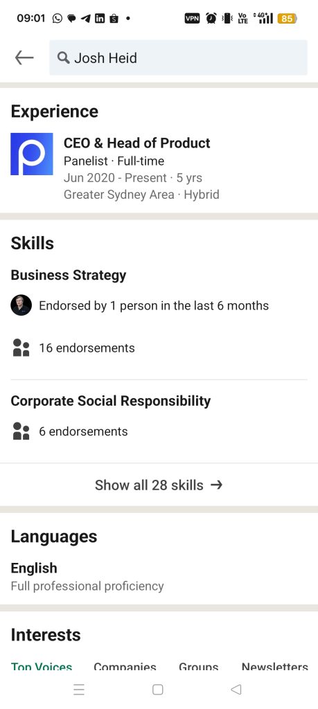 Josh’s LinkedIn profile lists only one role: “CEO & Head of Product @ Panelist” No prior experiences, no education history, no supporting context. It’s almost as if a superhero descended straight into the event and infocomm industry without ever having to build a foundation.