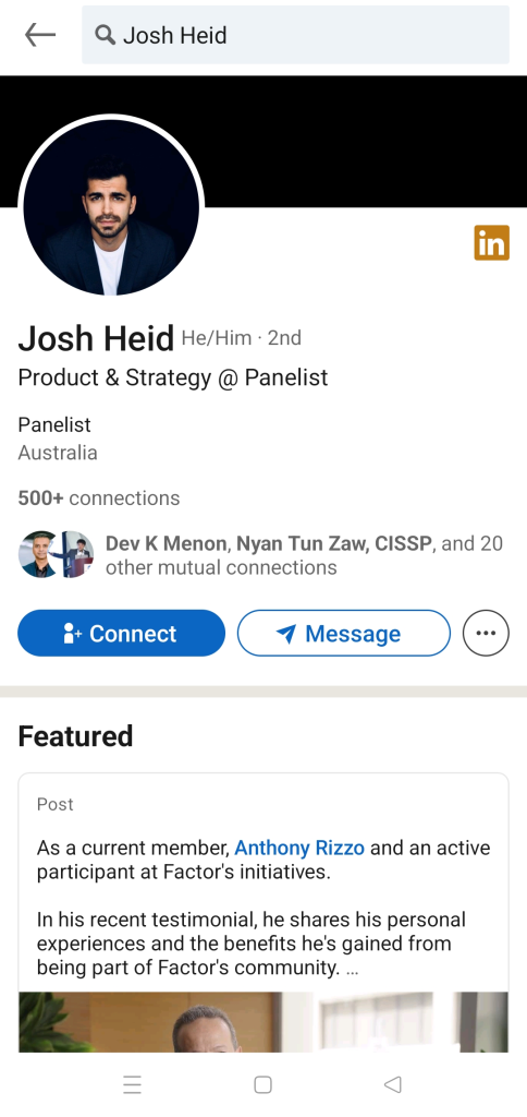 • Josh Heid – LinkedIn Profile Founder & Head of Product at Panelist and Factor (formerly Sit-Down). Little prior experience listed publicly.