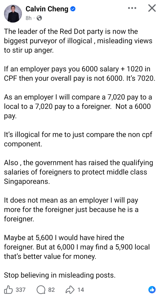 In an age where commentary spreads faster than context, public statements about national policies can shape perception almost instantly. Discussions about CPF, employment economics, and financial systems deserve more than simplified comparisons or selective framing. They require completeness, especially when they affect livelihoods, retirement security, and public trust.