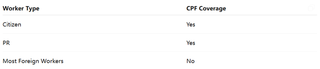 Most foreign workers do not receive CPF at all. Therefore real hiring comparisons often look like: